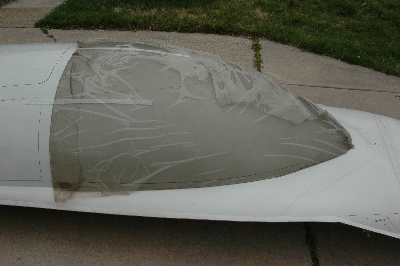 In this picture, you see our Canopy sitting upon the turtle deck. We have many options for how we want to cut our canopy. Full open as one sees it here, or do we want the cabin roof to extend as a visor over the canopy?