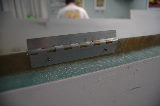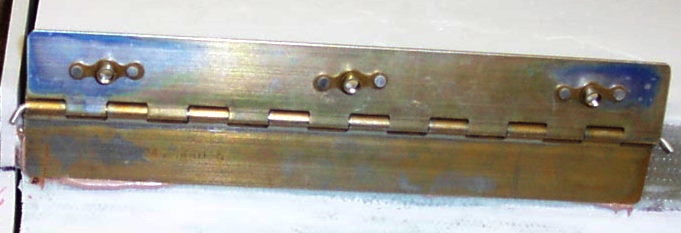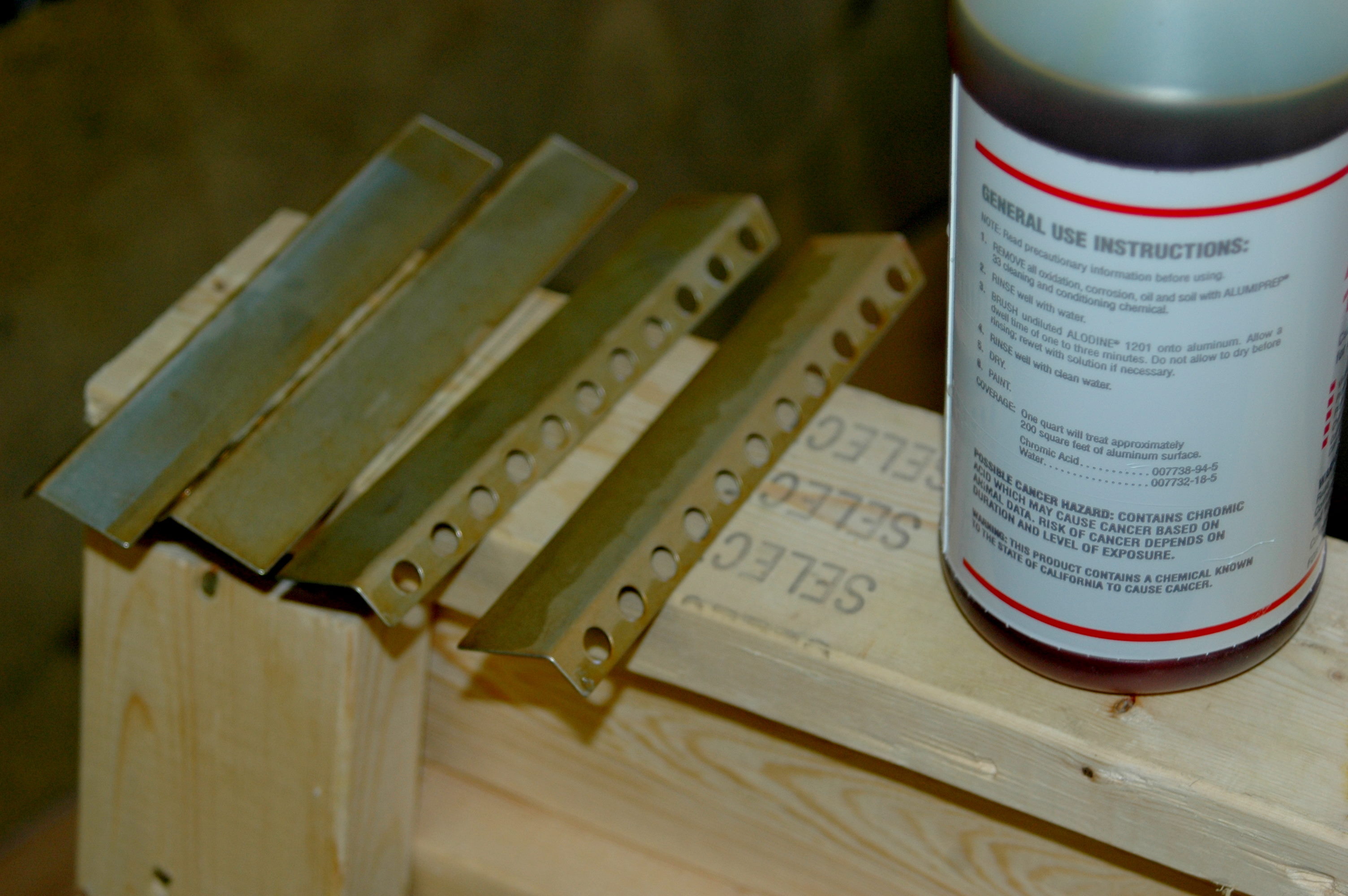 And now for some pictures of the Aileron work. In the first picture, you see our method of anodizing. These are the tabs that will be used in the reinforced areas where the hinges will attach. The next pictures show the counterweight going on and then the final sanding before the hinges are mounted.