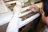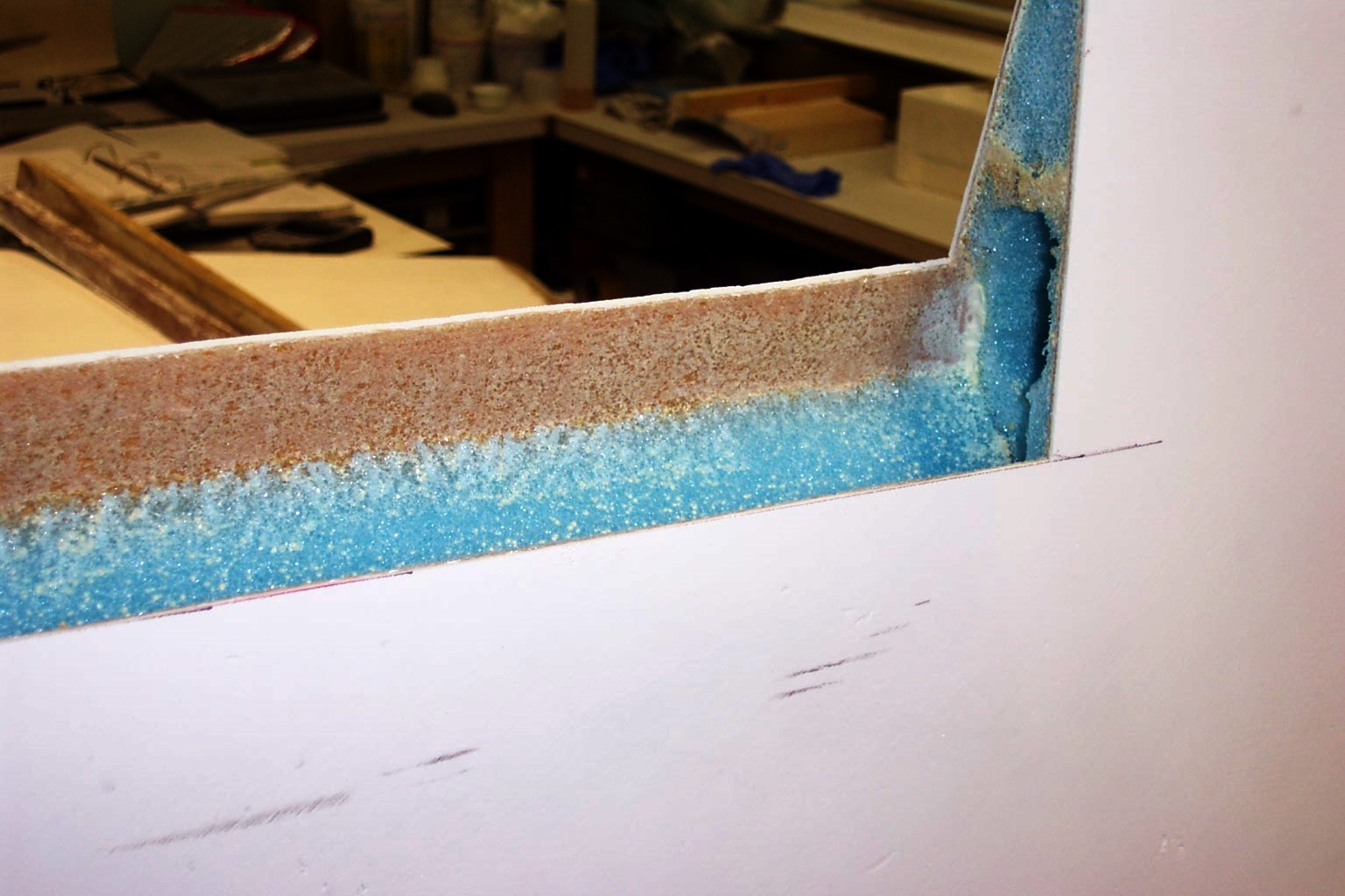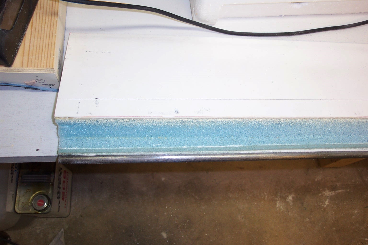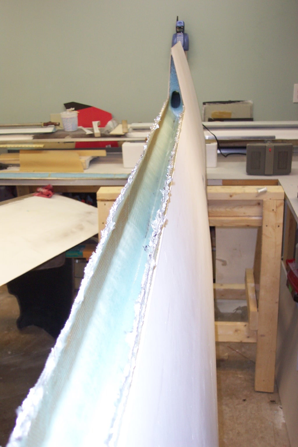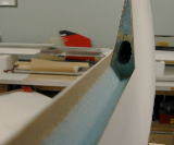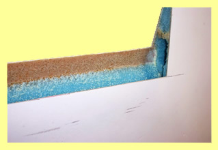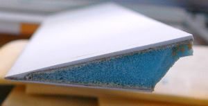 While we're speaking of tools, it might be a good time to mention a tool that is an absolute must: The Dremel style rotary tool. We use this tool to counter cut into the foam and to clean the flox off of the edges of the glass after removing foam such as will be done on the end of the Aileron end as pictured at right.