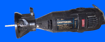 At left is our rotary tool. We keep a little router type attachment on the tool so we can monitor depth of the cutting blade. If you haven't purchased one of these tools yet, spend a few more bucks than we did and get a little heavier duty model as you will work this tool into the ground.