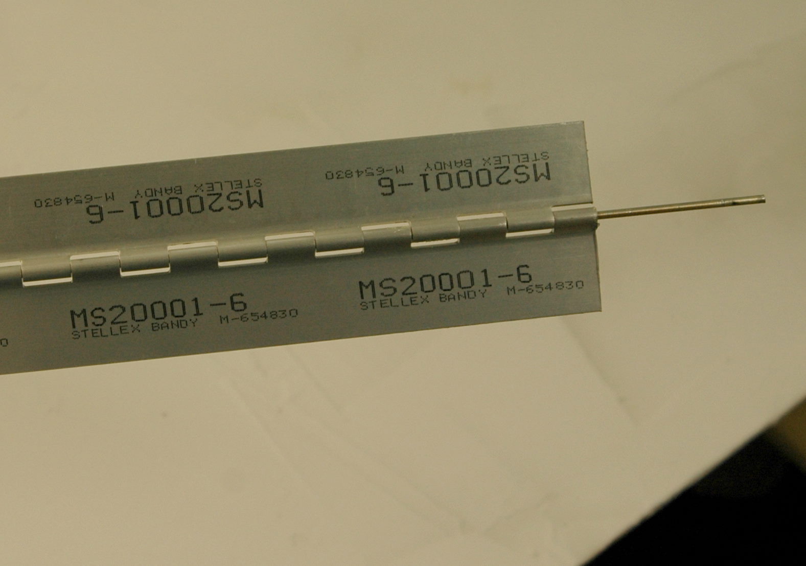 Now about the hinges. The manual states that you will need to pull the pins on your MS20001 hinges and rotate them. No problem! But, STOP after you've rotated them and reinserted the pins. DO NOT continue to crimp the ends and safety as the manual state. You will be removing these pins a few more times before you are REALLy ready to safety them in their final location with the ailerons attached. And about the "crimping" of the ends. We haven't figured out how to do that yet. Every time we try to crimp them, we end up work-hardening the pin and it becomes very brittle and breaks. Our solution, as of now, is to bend the pins over at a 90 degree bend.