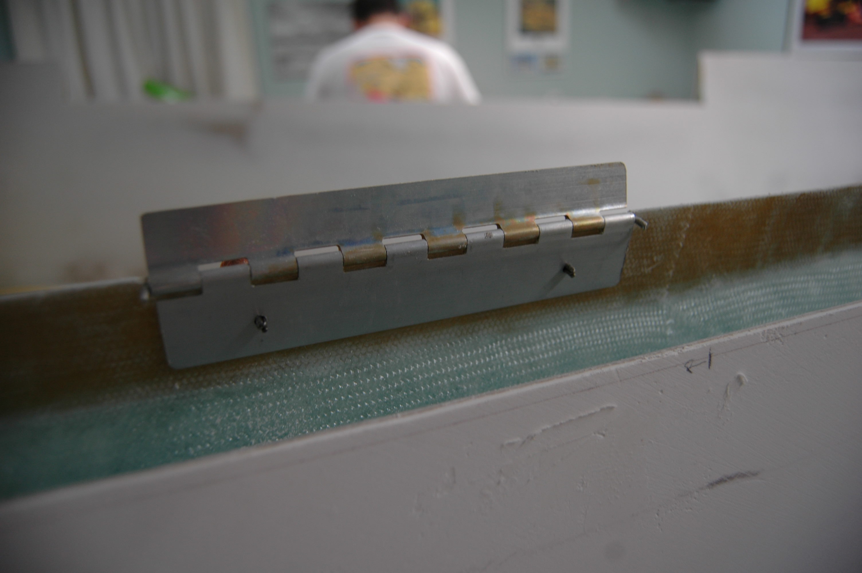 The last part of the hinge mounting process is to remove the ailerons from the wing after the Bondo sets and then mount drill your holes for the pop-rivits and flox and pop-rivit the hinges into their final position. Be sure your rivits penetrate the torque tube where specified in the manual.