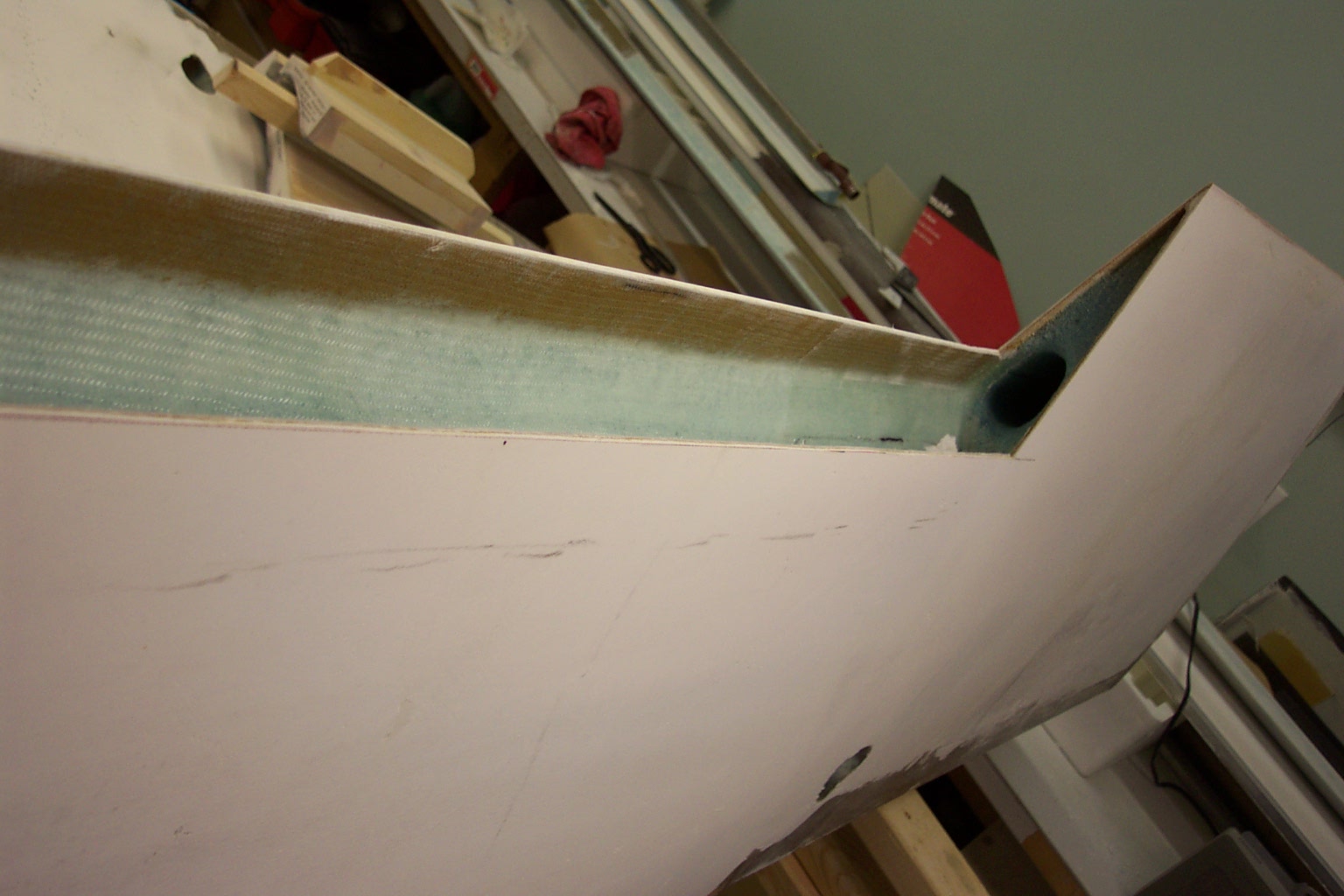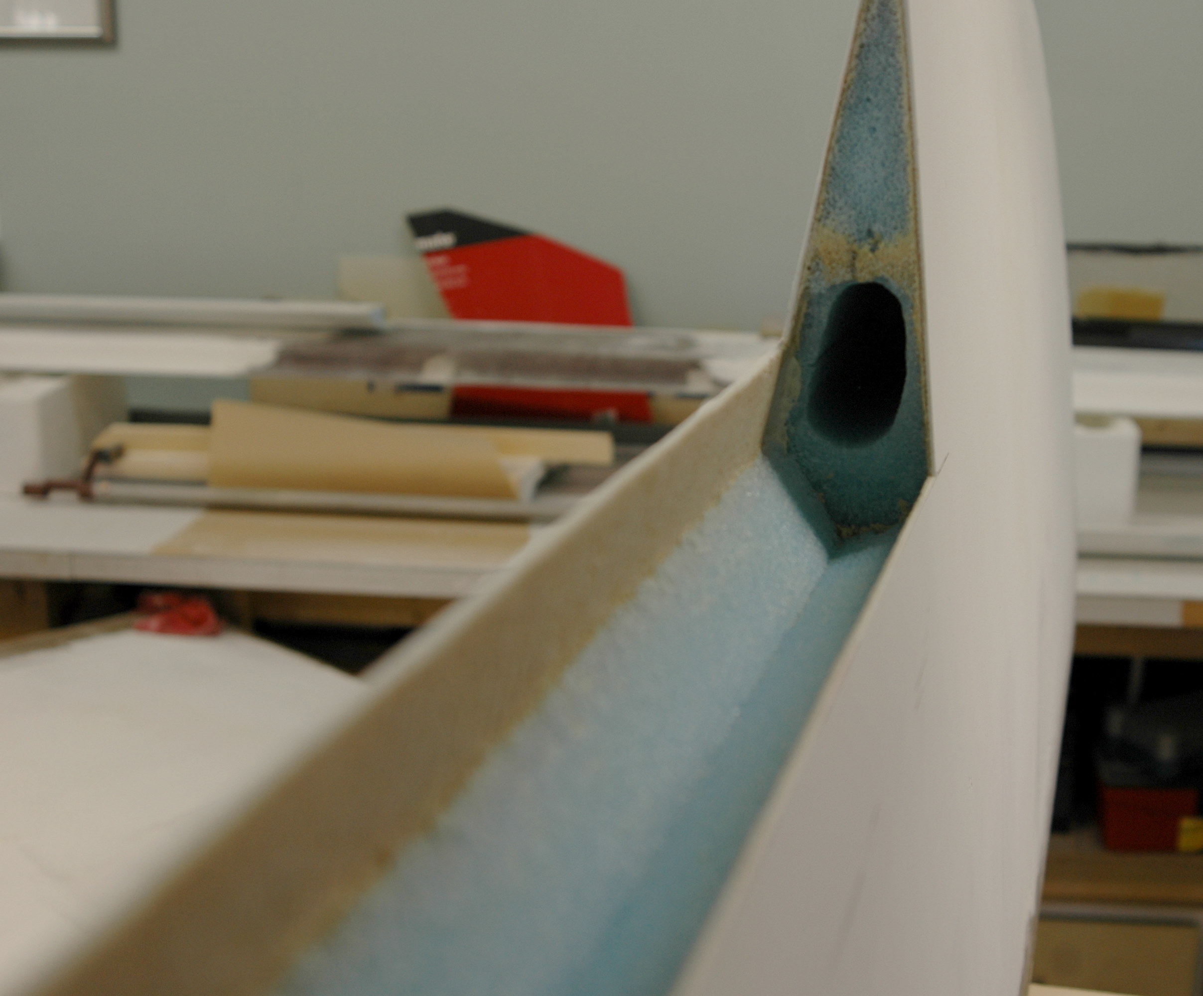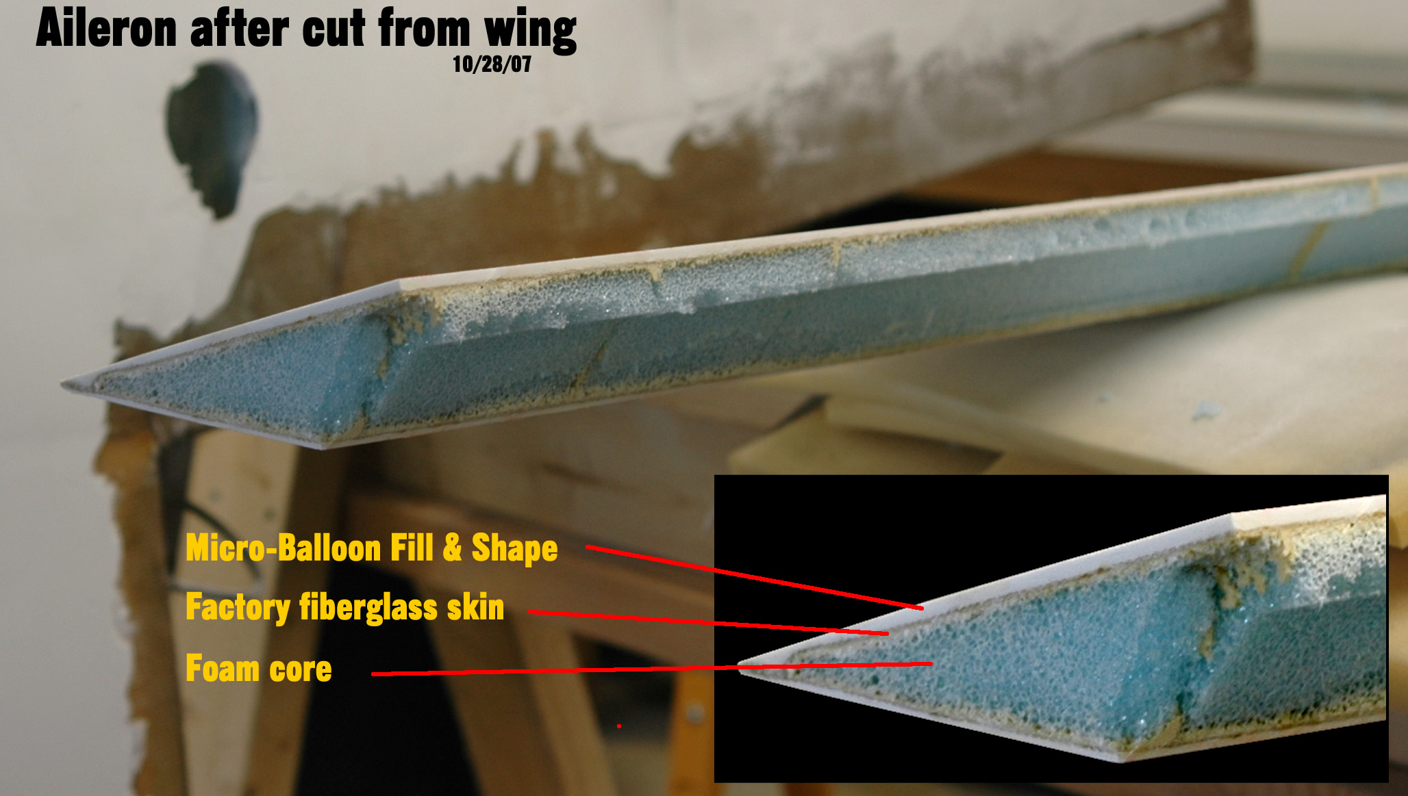 And a quick composite picture of what the fresh cut aileron looks like and what prep work we have on this part. Be sure to click on this picture to see the enlarged version with the annotations.