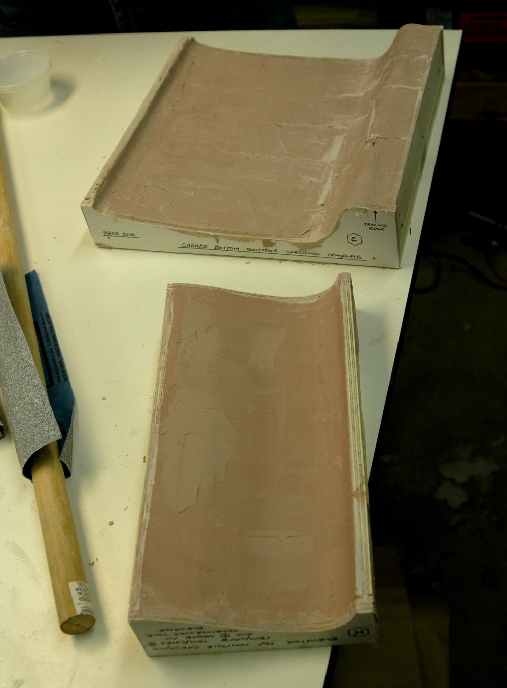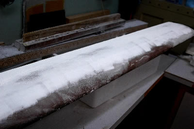 In anticipation the shaping and all the sanding needed, we made sanding blocks as per other builders recommendation. We figured that making these blocks would take 3-4 hours. WRONG! First we ran out of Bondo for the shaped sanding blocks. Then it took more Bondo and fills than we had anticipated, etc., etc...